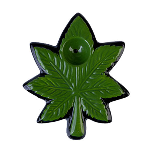 Pipa cerámica con doble función. Diseño de hojas de marihuana verdes con moldura 3D. Artículos para el hogar divertidos y novedosos para expresar tu estilo personal