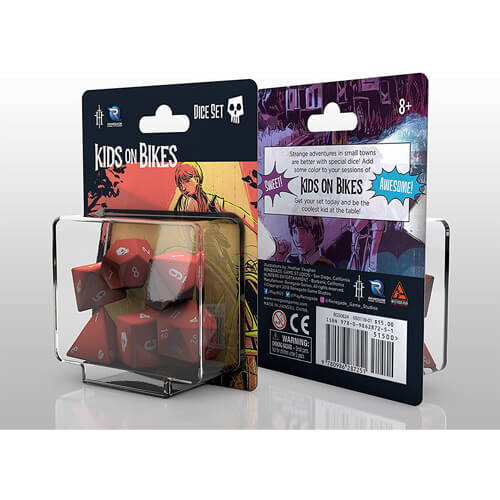 • ¡Logotipo personalizado de Kids on Bikes en un lado de cada dado!