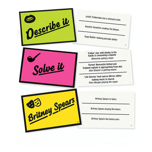 - De "Severus Snape se ahoga con una uva" Desde "Uranium jugando a Cranium" hasta "Un T-Rex mezclándose en los decks", el juego de fiesta hará que la familia grite rimas ridículas en poco tiempo.