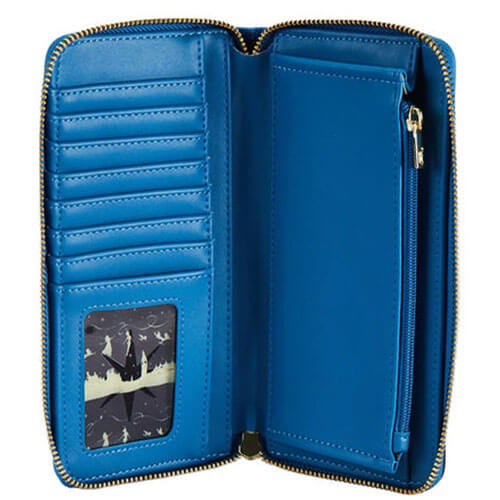 El viaje al País de Nunca Jamás comienza con fe, confianza y un poco de polvo de hadas. En este diseño mágico, Peter Pan y Tinker Bell guían a Wendy, John y Michael a través de los cielos de ensueño de Londres. El Big Ben brilla detrás de ellos mientras se elevan hacia adelante, ¡literalmente! ¡La esfera del reloj y las ventanas de la torre brillan en la oscuridad! La segunda estrella a la derecha que conduce al País de Nunca Jamás se ve en la parte posterior de la billetera entre las nubes nocturnas. Con impresionantes apliques y bordados que acompañan la escena icónica, como un pensamiento maravilloso, ¡este diseño te hará levantarte del suelo!