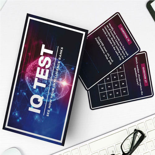 - La caja contiene 40 tarjetas de preguntas sobre coeficiente intelectual.