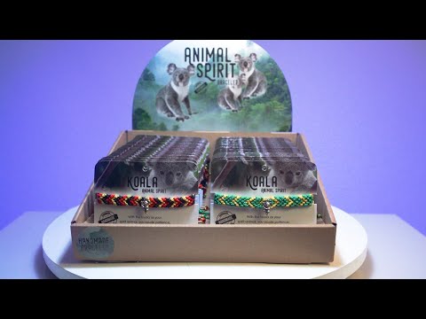 Pulsera de chevrón tejida a mano con un dije de koala.