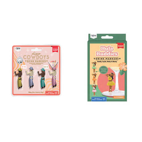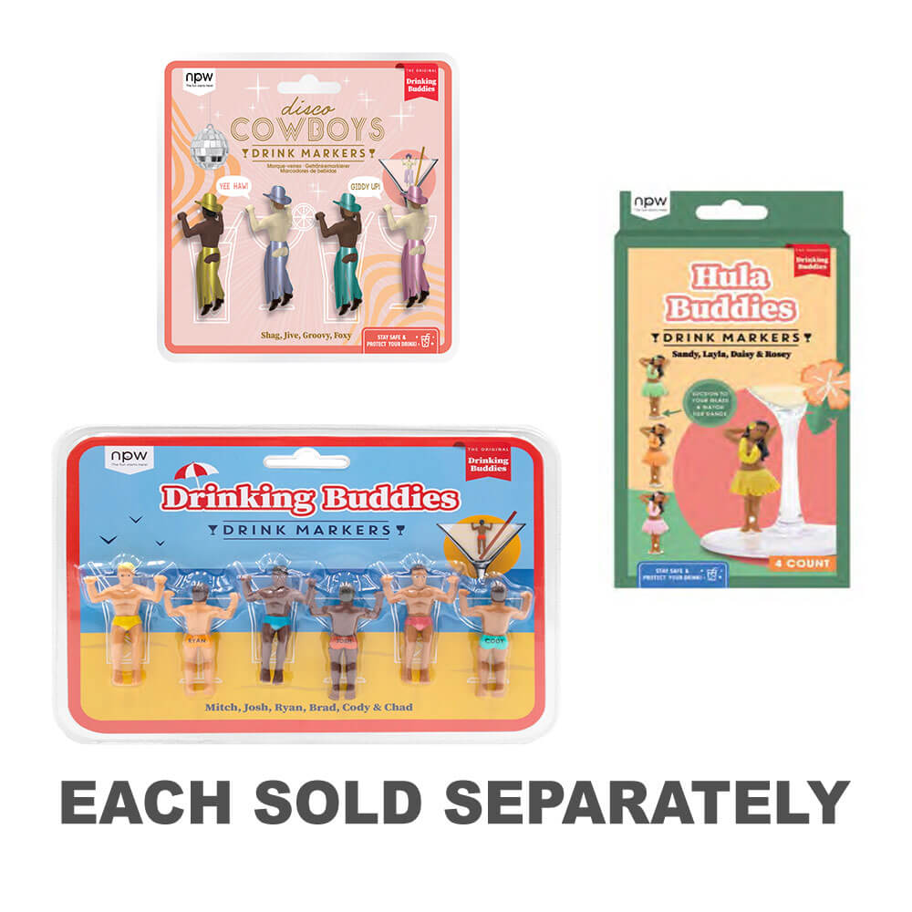 Coloca tu Hula Buddy con ventosa en tu vaso y ella cuidará tu bebida. Elige una dama para que esté a tu lado y ella bailará toda la noche.