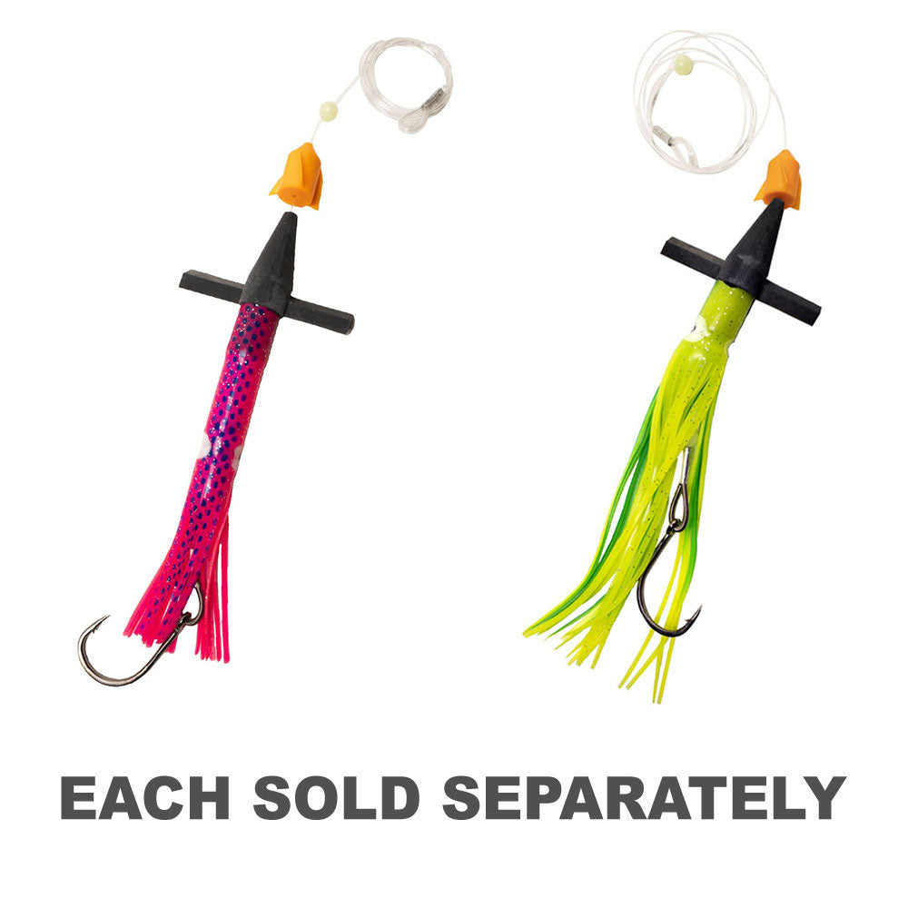 The Sea Pro Rocket Teaser is a great choice for your next trolling setup. Features a fully rigged 9 inch (230mm) Rocket Teaser with a 10/0 stainless steel sharp point troll hook. The additional Rocket Spinner at the nose of the teaser add to the bubble trail and action. Ready to troll. 1 X 10 inch Teaser, 1 X Rocket Spinner, 10/0 Sharp Point. Rigging: 200 pound Hard core mono.