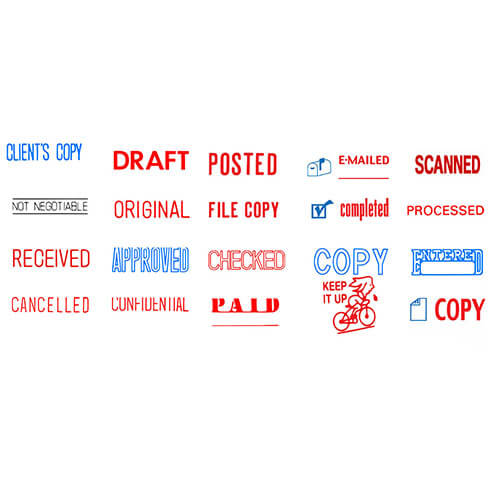 - Los sellos de título en stock Xstamper, preentintados y reentintables, ofrecen miles de impresiones claras y nítidas antes de que sea necesario volver a entintarlos