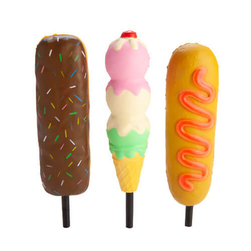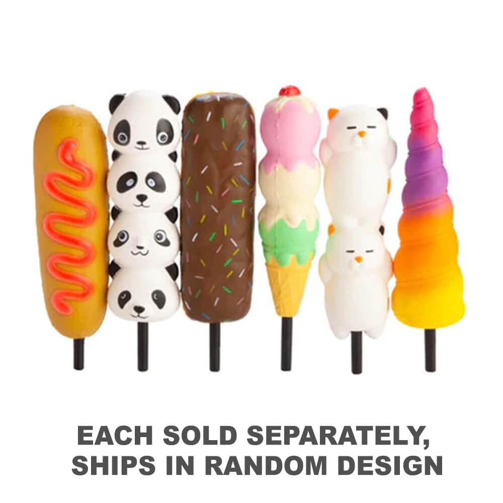 Las partes divertidas del bolígrafo están hechas de un material blando similar a la espuma que se comprime y recupera su forma original. El cuerpo suave del bolígrafo es cómodo en tu mano y te resultará extrañamente adictivo aplastar un cono de helado o un hot dog en el espacio más pequeño posible y verlo crecer hasta alcanzar el tamaño inicial.