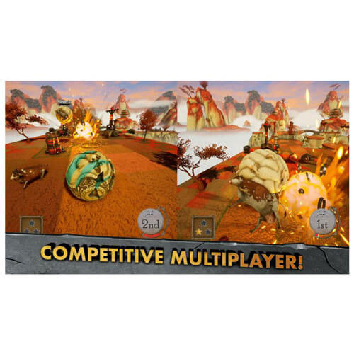 • Construye defensas y compite para destruir a tus oponentes en el modo multijugador en línea de hasta 4 jugadores, o cara a cara en acción de pantalla dividida para 2 jugadores.