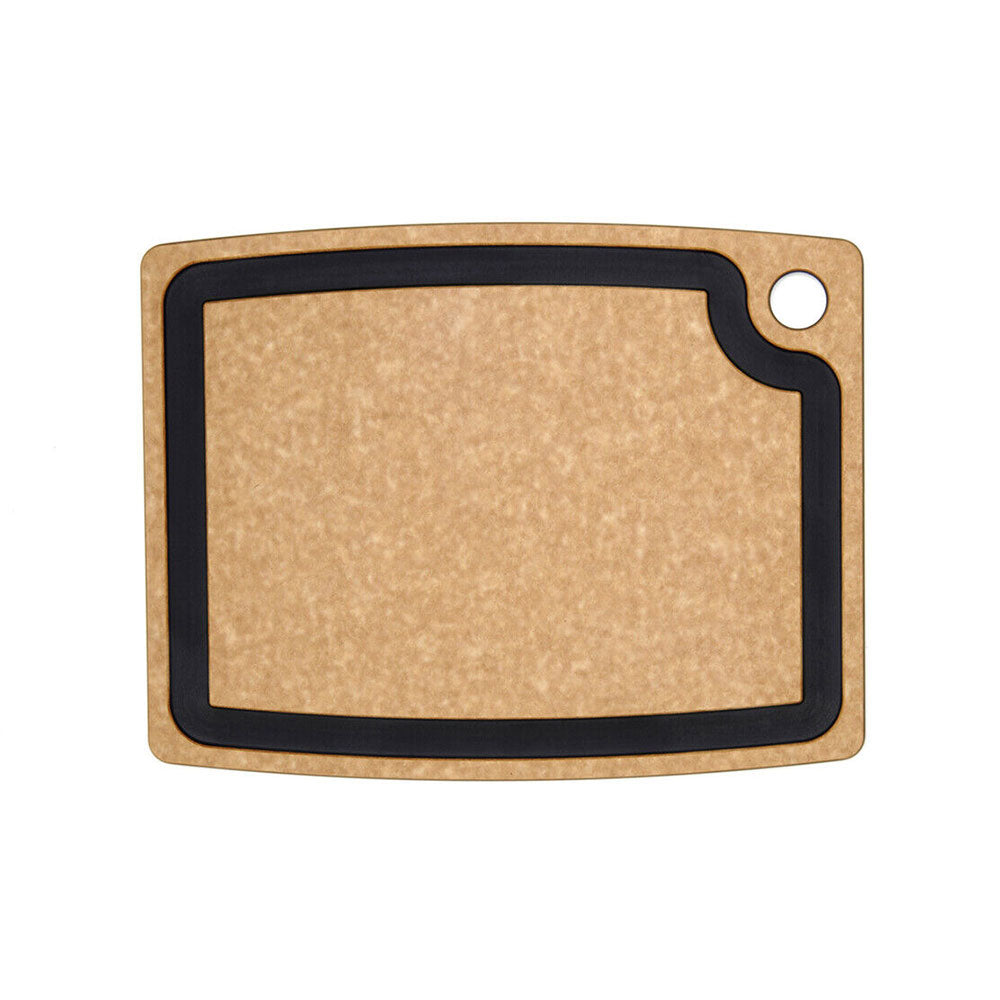 - Tabla de cortar de 14,5 x 11,25 pulgadas en color natural con detalles en color pizarra; superficie de corte de doble cara