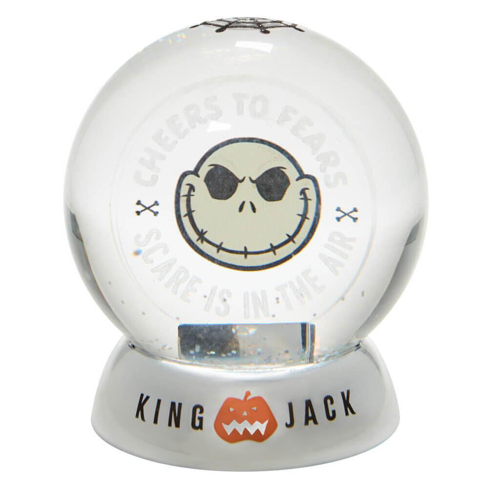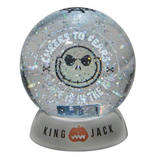 Con elementos grabados y una encantadora calcomanía, esta bola de agua presenta al Rey Calabaza en su forma más deslumbrante. Con el mensaje "Cheers for Fears" y "Scare is in the Air", esta bola de nieve brilla con travesuras y travesuras de Halloween.