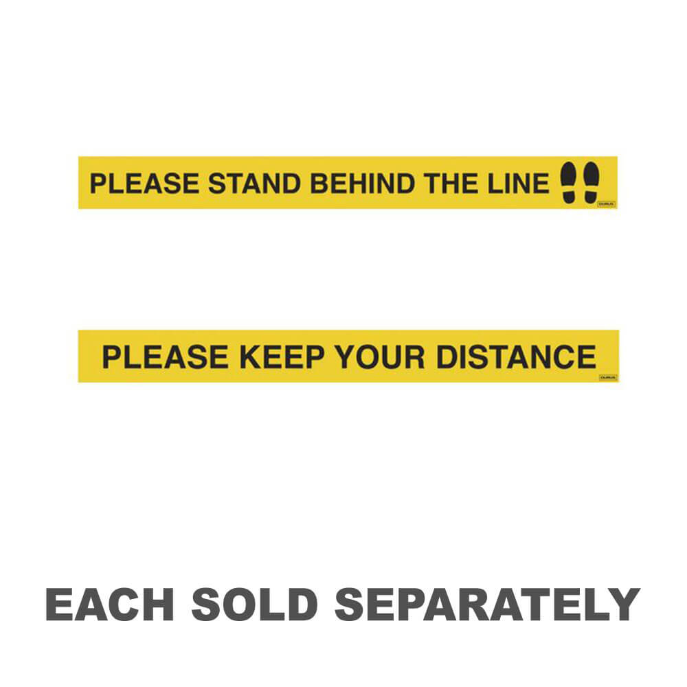Estas tiras adhesivas para pisos DURUS son un excelente artículo para tener en su lugar de trabajo y garantizar que los clientes sigan las medidas de distanciamiento social. Estos adhesivos son antideslizantes y se pueden usar en la mayoría de los tipos de pisos hasta por 3 meses. Vienen en tiras para trazar fácilmente los requisitos de distanciamiento en su negocio.