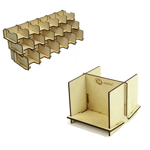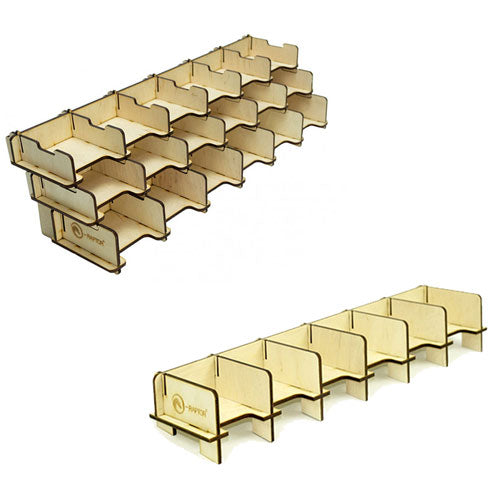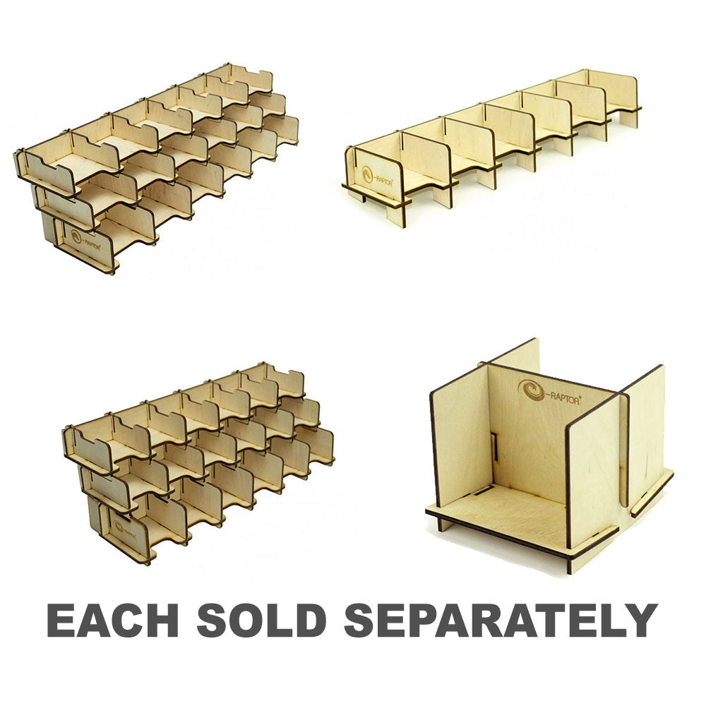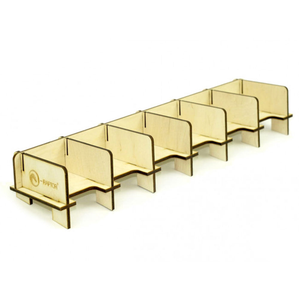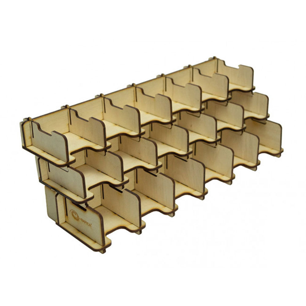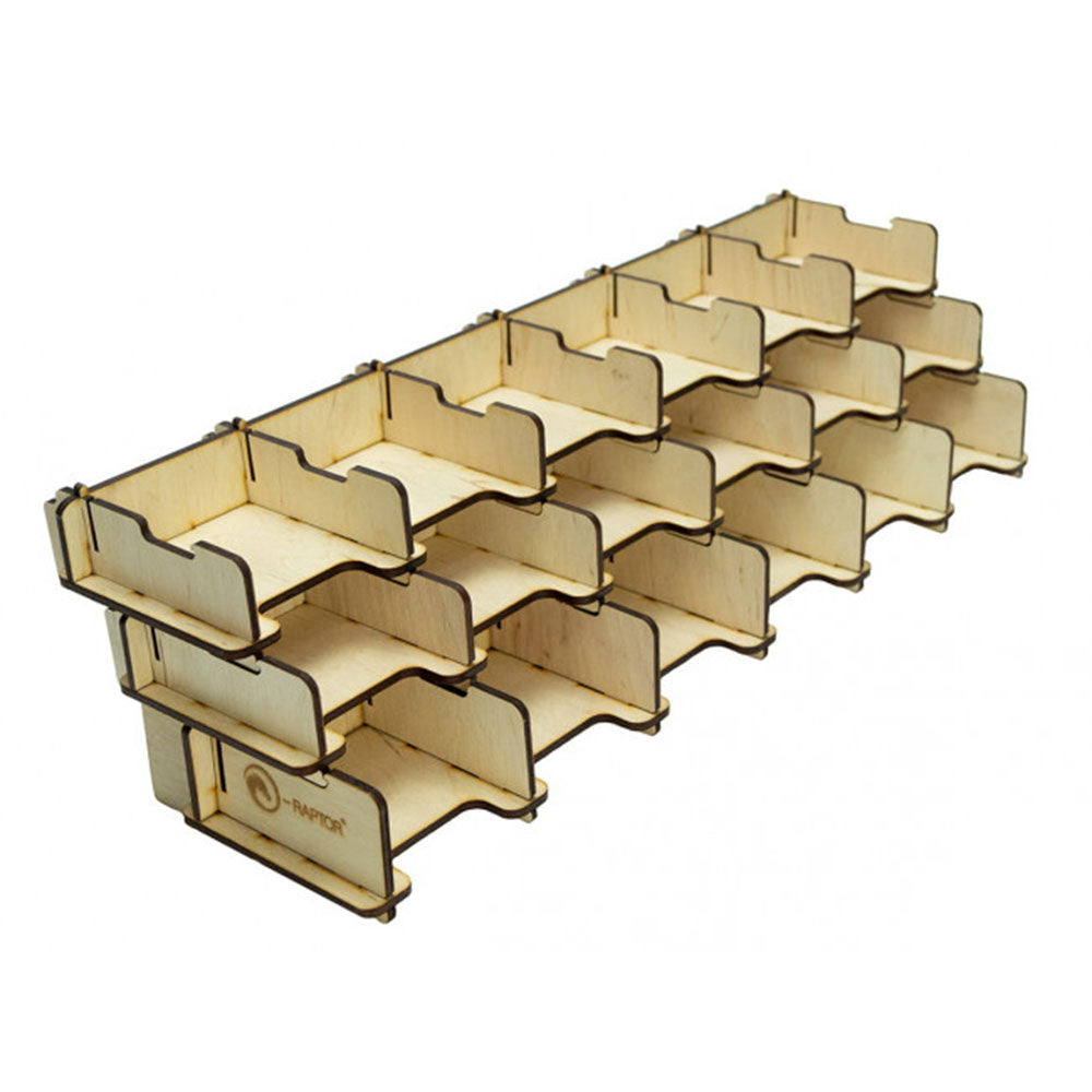 Alternativa de madera a nuestro tarjetero de plexiglás Tarjetero e-Raptor - 2L Sólido. Fácil de montar antes del juego y desmontar después. Caben unas 200 tarjetas.