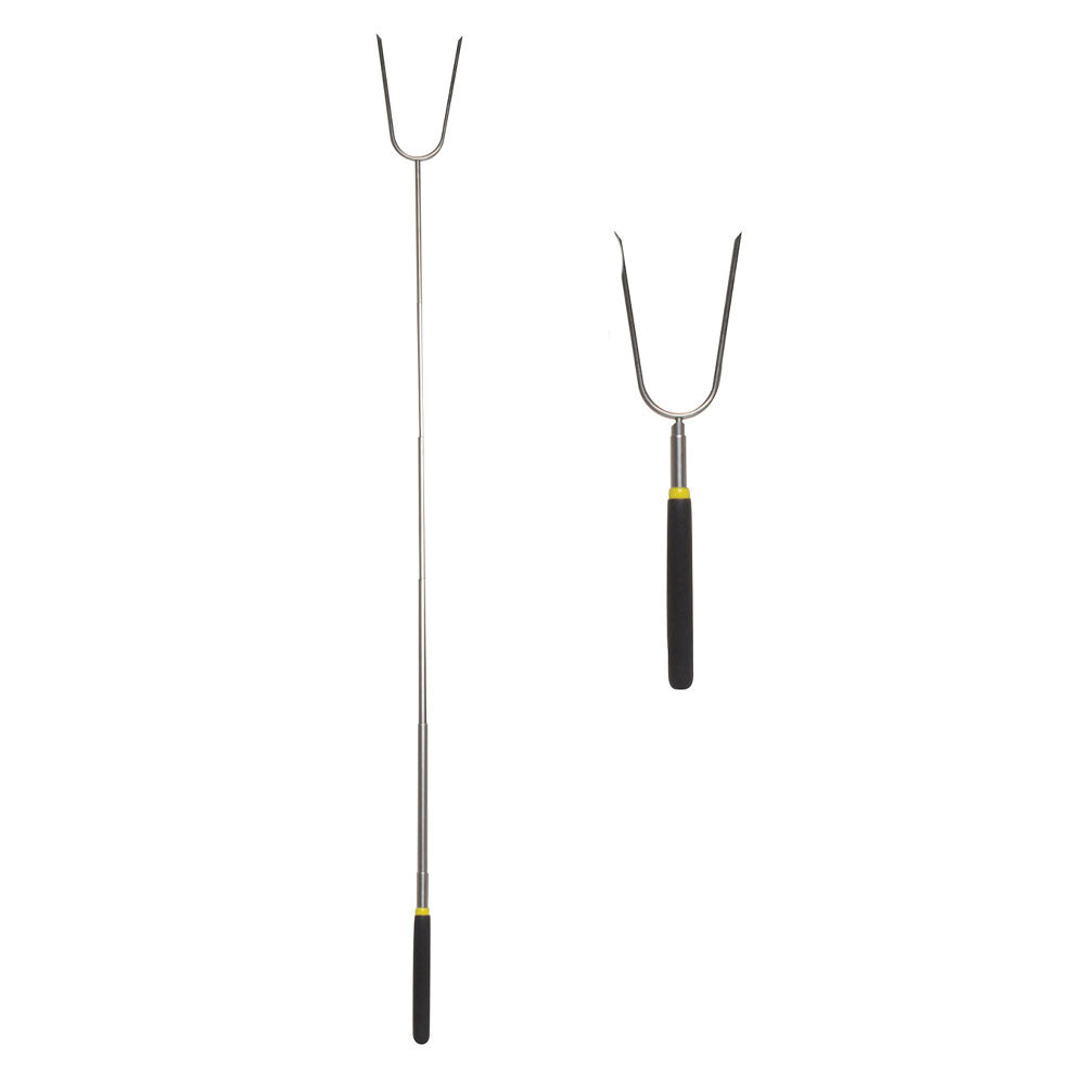 • El mango de madera con rodillo para el pulgar gira los alimentos para cocinarlos de manera uniforme.