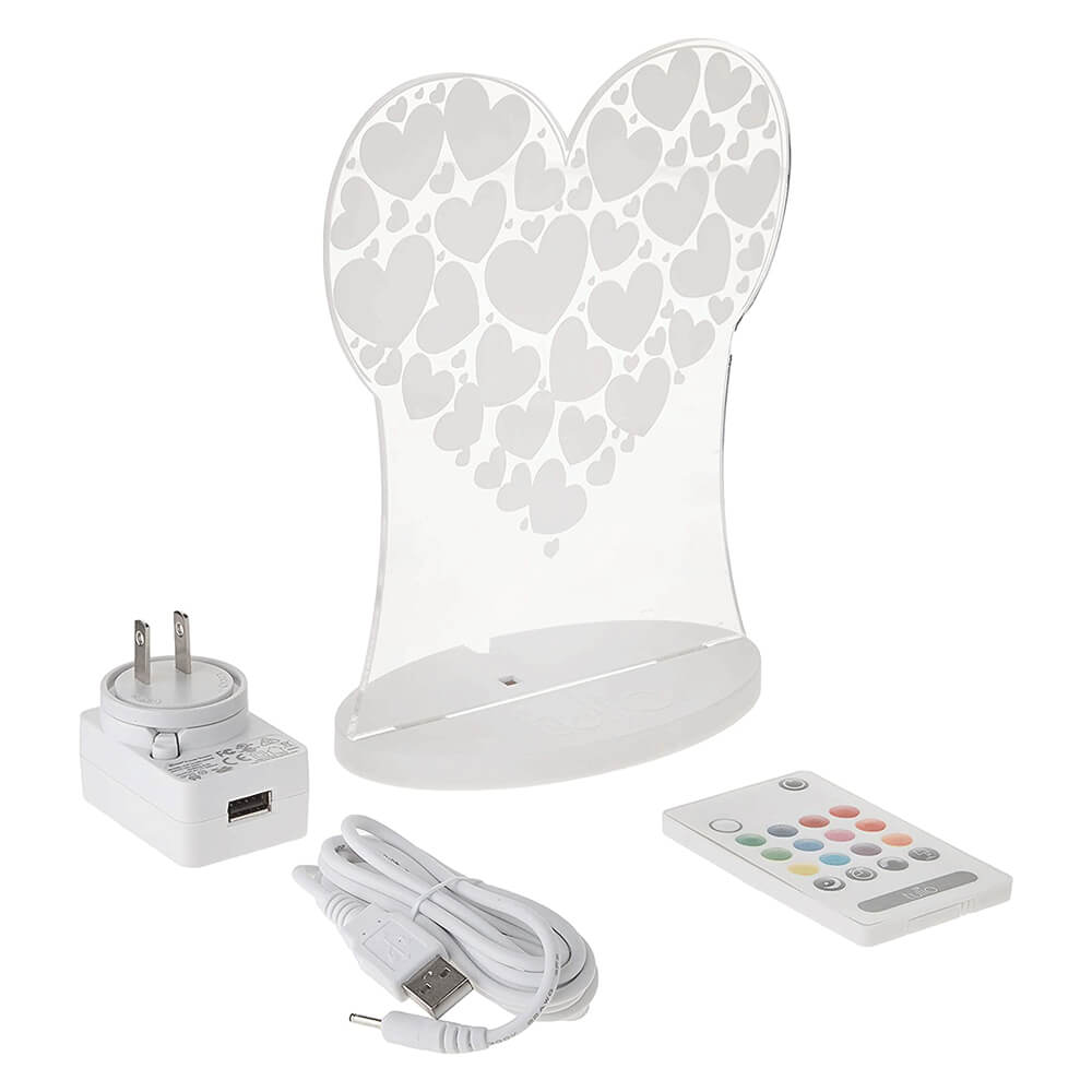 Siempre es necesaria una luz nocturna en su hogar para garantizar que usted y su familia puedan dormir cómodamente y moverse con seguridad por la noche. ¡Pero nunca ha habido una luz nocturna tan versátil y útil como Tulio Dream Light! Esta única luz Tulio te ofrece la opción de luz blanca o doce hermosos colores: ¡simplemente elige el color que desees con un clic del control remoto! ¿Tienes ganas de ver todos los colores? ¡La función Arcoíris los recorrerá y le brindará una hermosa gama de colores que seguramente alegrará cualquier día! ¿Es hora de acostarse? Lee un cuento antes de dormir con la luz blanca para acurrucarte y dormir. Luego use el control remoto para elegir un color relajante y configurar la función Temporizador para apagar la luz después de 15 minutos. ¿Necesitas una luz nocturna? Configure la lámpara en la configuración de suspensión en lugar del temporizador para que la luz se apague lentamente hasta obtener un brillo suave, perfecto para un sueño profundo y reparador. Su Tulio incluye la luz Tulio, una base LED de bajo consumo, un control remoto y un cable de alimentación USB con certificación UL.