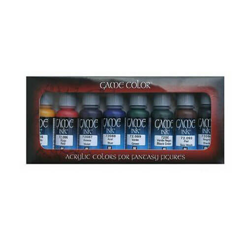 Colección de 8 sets de colores de Game Color para pintar maquetas y miniaturas. Cada uno de estos sets tiene una selección de colores especiales para pintar figuras, etc. Contiene 8 botellas de 17 mL. (con cuentagotas) y carta de colores. Colores 72.140 Tono de piel intenso 72.141 Rojo intenso 72.142 Violeta intenso 72.143 Azul intenso 72.144 Gris azul intenso 72.145 Gris intenso 72.146 Verde intenso 72.147 Verde negro intenso